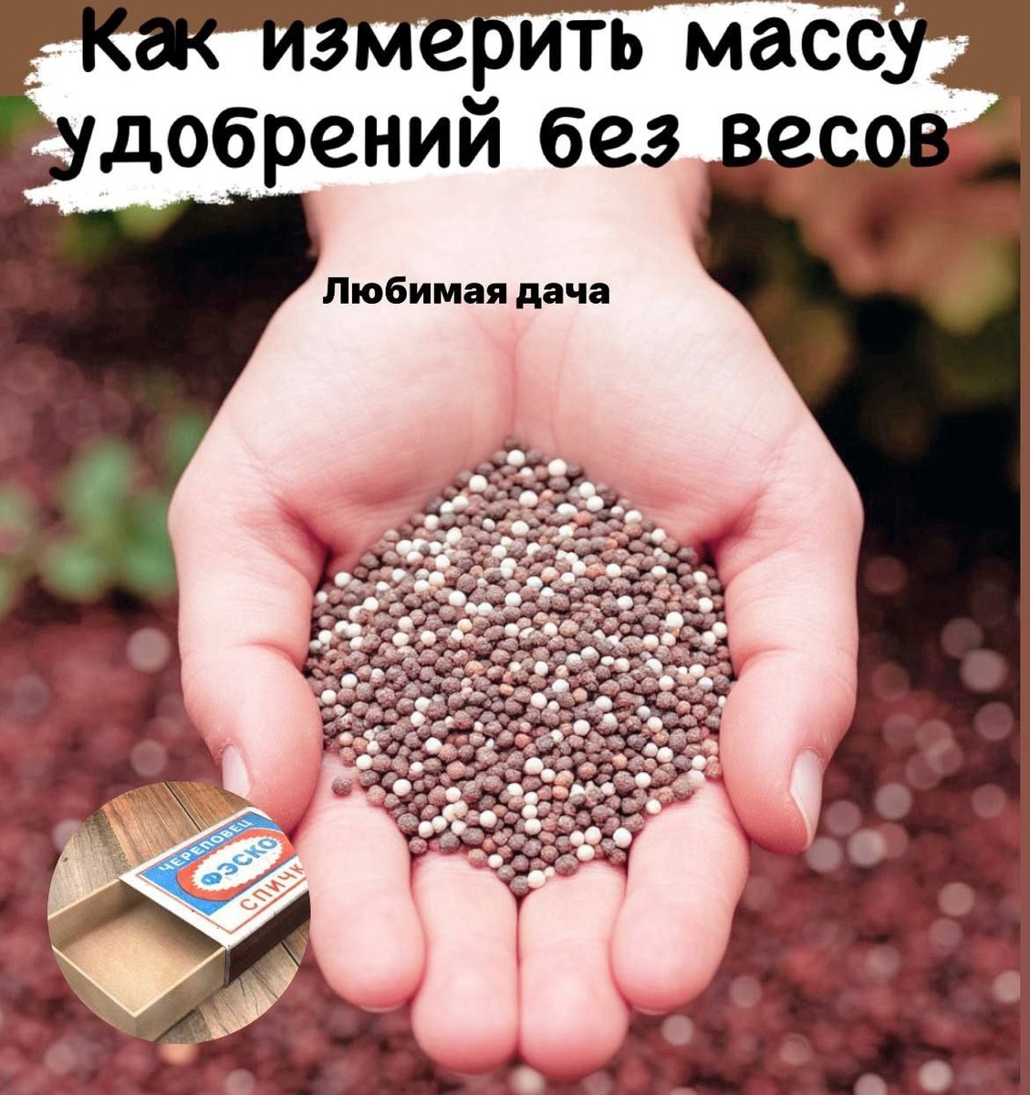 Примерное количество грамм удобрений, которое помещается в спичечный коробок: ▪️Фосфорной муки - 34г ▪️Комплексных удобрений - около 20г ▪️Сернокислого калия -25г ▪️Калийной селитры - 25г ▪️Суперфосфата порошкового - 24г ▪️Калийной соли - 20г ▪️Торфяной золы - 8г ▪️Хлористого калия - 18г ▪️Суперфосфата в гранулах - 22г ▪️Сульфата аммония - 17г ▪️Аммиачной селитры - 17г ▪️Мочевины - 15г ▪️Извести-пушонки - 12г ▪️Пепла - 10г| Больше советов тут, подписывайтесь: 🏡 ДАЧА в Телеграмм 🏡 ДАЧА на Дзен 🏡 ДАЧА во ВКонтакте