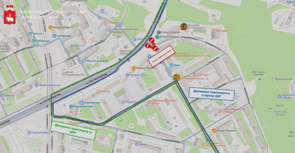 Краевое управление автомобильных дорог и транспорта сообщает о временном закрытии перекрестка в начале ул. Мильчакова с 6 по 16 июля включительно. Ограничение движения связано с проведением работ по переустройству коммуникаций и строительству перекрестка в проектном варианте. В период проведения работ будет изменена схема движения общественного транспорта, курсирующего по маршруту от шоссе Космонавтов до ул. Мильчакова. При движении с ул. Мильчакова в сторону рынка после остановки «Таврическая» автобусы будут сворачивать на ул. Связистов, выезжать на ул. Овчинникова и останавливаться на шоссе Космонавтов (остановка «Мильчакова»). В обратном направлении автобусы будут делать остановку на шоссе Космонавтов (остановка «Мильчакова») и двигаться далее по ул. Овчинникова и ул. Связистов до остановки «Таврическая». На время закрытия перекрестка также не будет функционировать остановка «Вильвенская». Дорожная карта. Как продвигаются ключевые дорожные проекты в Пермском крае Фото: Министерство