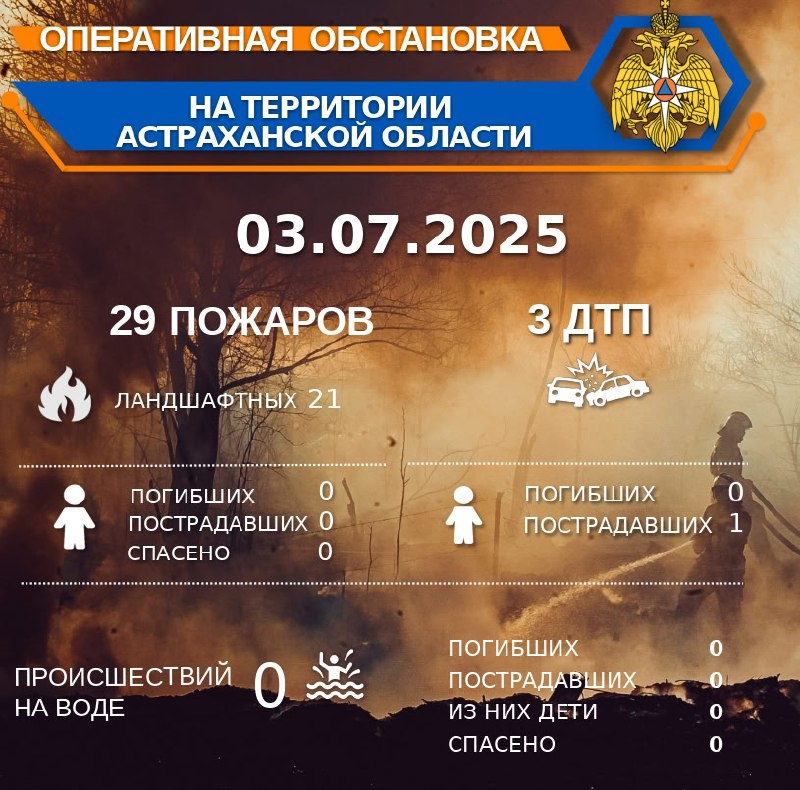 🚨Оперативная обстановка на территории Астраханской области по состоянию на 00:00 03.07.2025