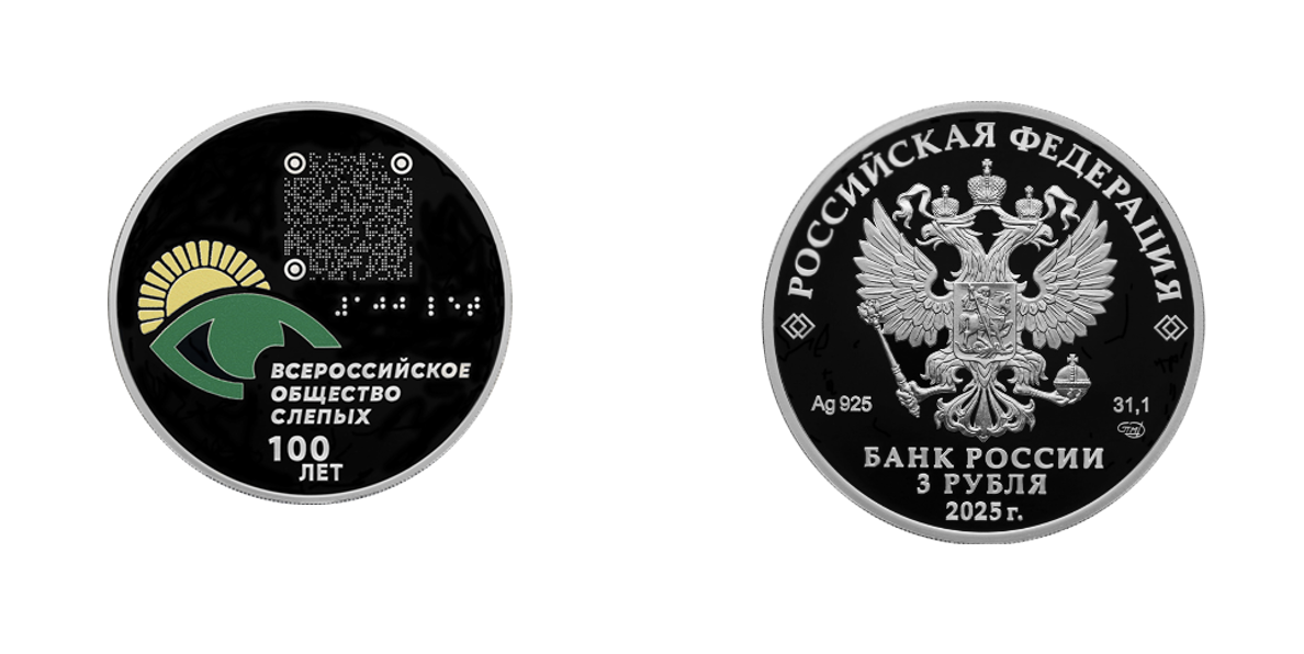 В продажу поступила памятная серебряная монета, посвященная 100-летию Всероссийского общества слепых