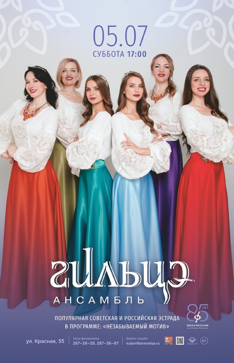 💛АНСАМБЛЬ «ГИЛЬЦЕ»💛 🎶 5 ИЮЛЯ в 17:00 ансамбль «Гильце» представит программу «Незабываемый мотив» — яркую палитру эстрадных хитов, наполненных теплом, нежностью и эмоциями✨ 🎤 В программе — любимые мелодии, которые раскроют все оттенки женской души: от лирических песен до страстных, зажигательных композиций. Ждём вас в зале Краснодарской филармонии, где музыка звучит особенно проникновенно. Не пропустите! 🎟 🏛БИЛЕТЫ: касса | ул. Красная, 55 сайт | https://clck.ru/3Muvw9 🧡Можно по «Пушкинской карте»