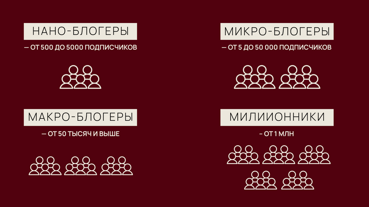 - Нано-блогеры — от 500 до 5000 подписчиков