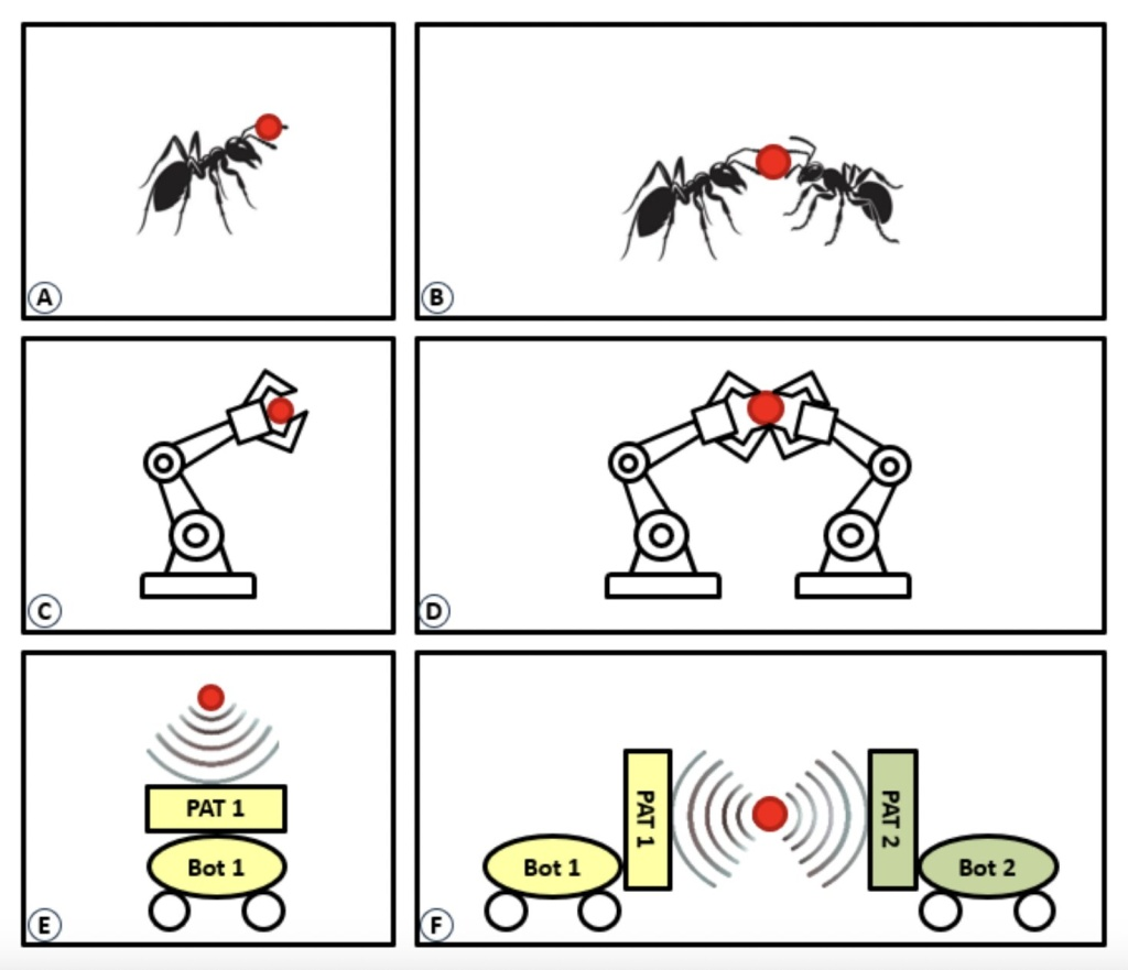 Исследователи из Университетского колледжа Лондона (UCL) недавно разработали новую систему, которая позволяет роботам совместно транспортировать объекты, используя при этом высокочастотные звуковые волны, которые не могут быть услышаны человеком. Эта система, описанная в статье на сервере препринтов arXiv, вдохновлена коллективной динамикой муравьев и других насекомых, которые, как известно, тщательно координируют свое поведение при переносе кусочков пищи, мусора или других крошечных предметов обратно в свое гнездо.