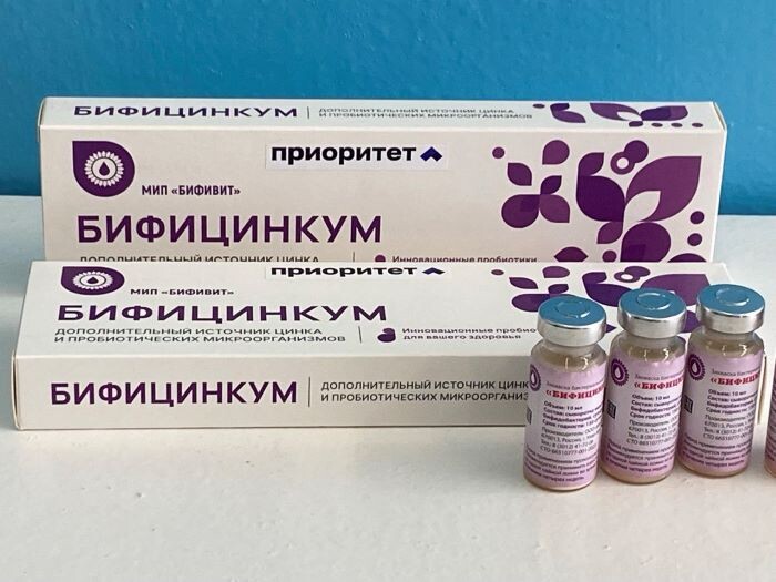 Результаты научных исследований под руководством доктора технических наук, профессора Ирины Хамагаевой в рамках реализации программы Приоритет-2030 стратегического технологического проекта «Бурятия – территория здорового питания» нашли практическую реализацию в разработке биопрепарата Бифицинкум. Новизна предлагаемого технического решения заключается в принципиально новом подходе к получению БАД путем культивирования бифидобактерий в питательной среде, содержащей цинк. Бифицинкум – это источник цинка и бифидобактерий, является мощным иммуномодулирующим, антиоксидантным и противовирусным средством. Бифидобактерии повышают биодоступность цинка, а цинк стимулирует их рост и оказывает положительное влияние на пробиотическую микрофлору кишечника. Бифицинкум содержит высокое количество жизнеспособных клеток бифидобактерий и цинк в биодоступной форме, их сочетание оказывает высокий позитивный эффект на организм человека: - активизирует иммунные реакции, направленные против патогенных бактерий