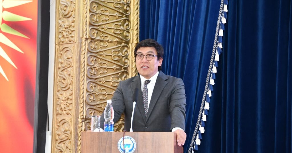 Бишкек, 03.07.25. Жогорку окуу жайлардын жетекчилери менен министрликтин жыйынында Эдиль Байсалов министрдин жаңы орун басарлары Нурлан Омуров жана Айбек Чотоновду тааныштырды. Жолугушууда университеттик программаларды жаңыртуу жана реформалоо боюнча пландар талкууланды.