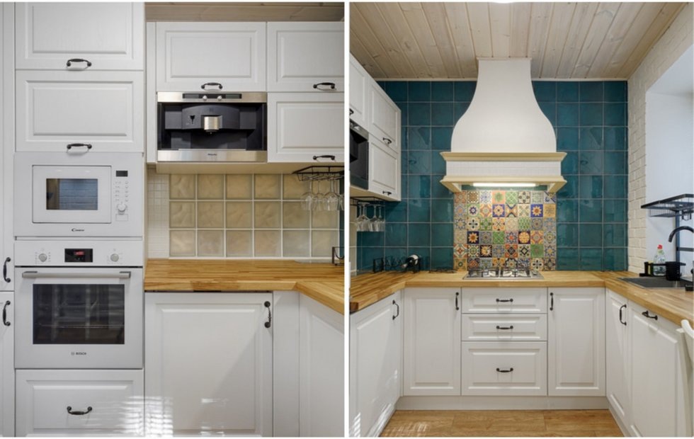 «Квартира началась именно с этой плитки. Здесь расположена варочная газовая зона, и она декорирована мексиканской плиткой ручной работы. Все остальное — это плитка такая недорогая известного производителя».