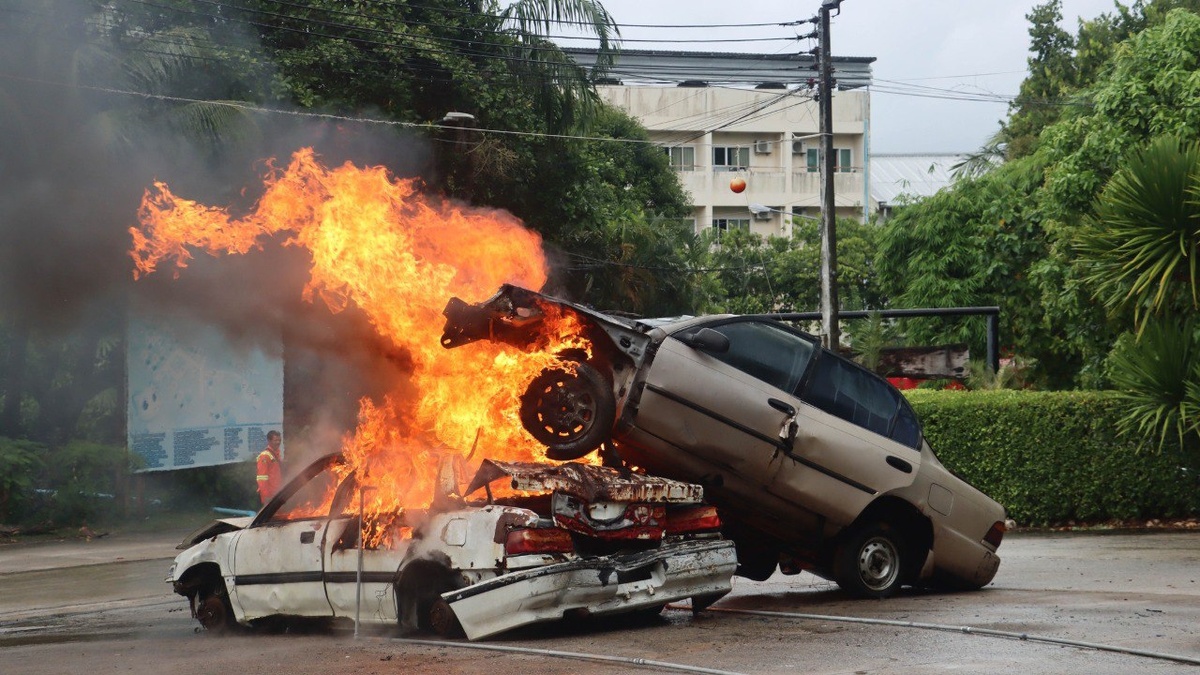 Первые учения по тушению загоревшегося электромобиля прошли на Пхукете