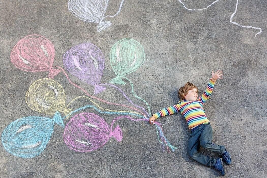 Можно вместе с ребенком рисовать на тротуаре различные фигуры, животных или целые картины. Либо устроить конкурс рисунков. Это развивает воображение и мелкую моторику.