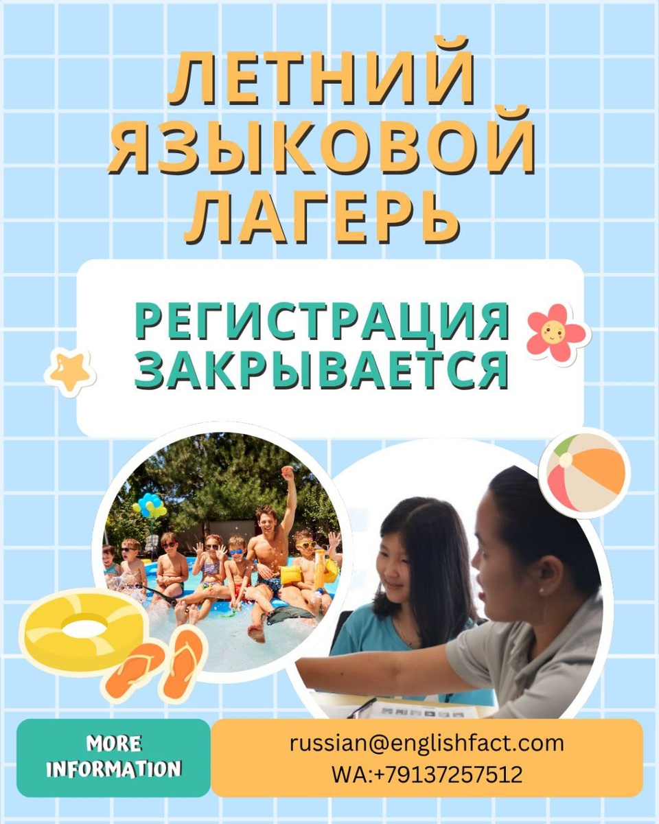 🎉 Друзья! ВАЖНОЕ ОБЪЯВЛЕНИЕ! На следующей неделе ЗАКРЫВАЕТСЯ регистрация на: 👨👩👦👦 Family Camp — семейный лагерь 👫 Junior Camp — детский лагерь 🌞 Успейте записаться на летнюю программу! 📍 Подробнее и регистрация по ссылке: 👉 englishfact.com/ru/summercamp 📩 Есть вопросы? Пишите — с радостью ответим! #familycamp #juniorcamp #летнийлагерь #языковойлагерь #летнийлагерьанглийскогоязыка
