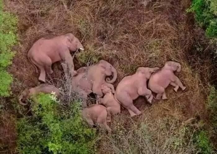 🎆Потрясающий редкий кадр с дрона который застал спящую семью слоников.