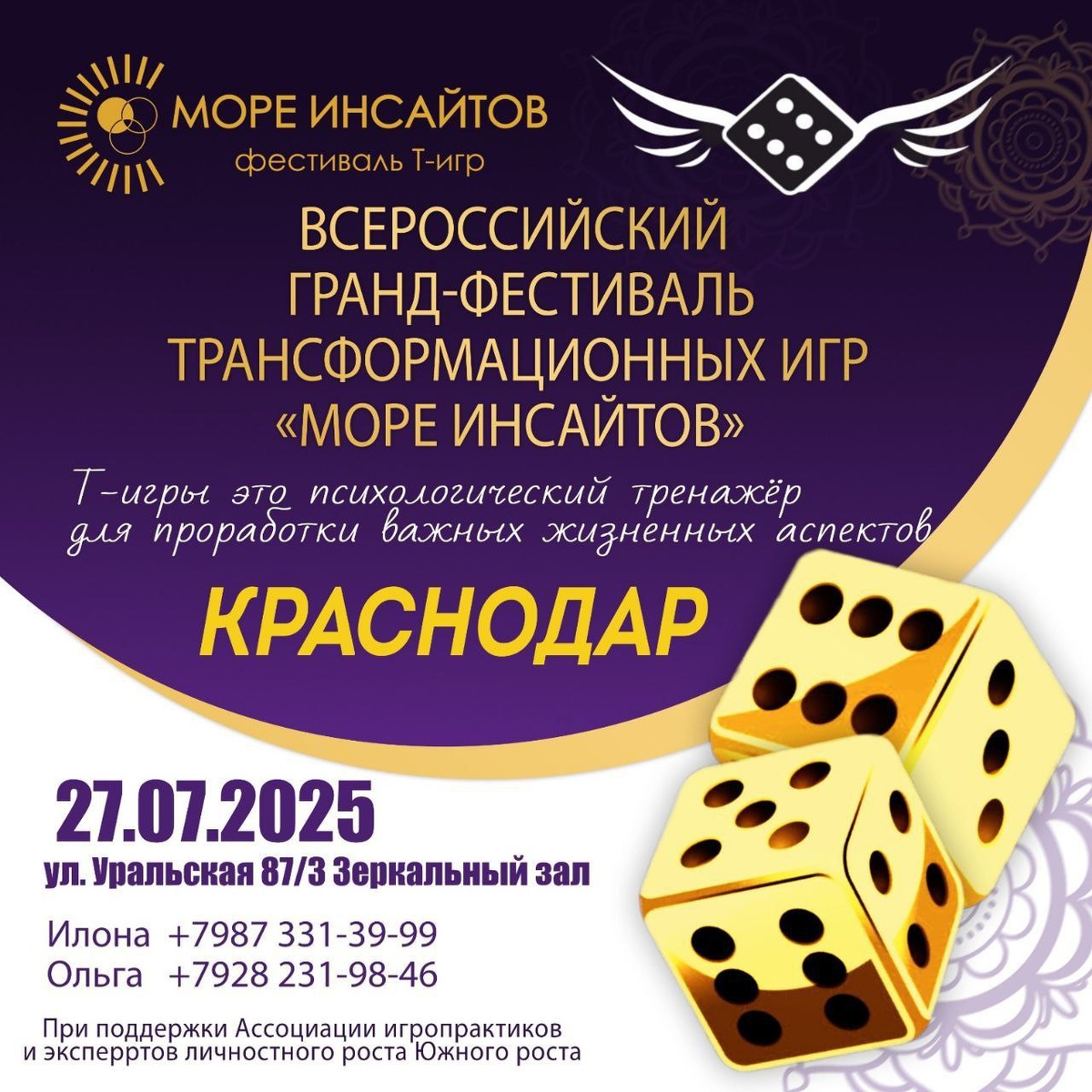 Приглашаем ❤️🔥27 июля в г. Краснодар на самый масштабный, топовый гранд-фестиваль психологических настольных игр! « Море Инсайтов» 300 + участников Вас ждёт 10 часов активностей: ❤🔥60 различных Трансформационных игр на выбор. ❤🔥Консультации экспертов разных сфер. ❤🔥Уникальные, экстравагантные фотозоны. ❤🔥Торгово-выстовочный сектор изделий ручной работы. ❤🔥Награждение «Мисс Фестиваль лето 2025» 👑🪩🪄 И это еще не всё - главные сюрпризы: 💎Розыгрыш Ценных призы от спонсоров и партнеров - главный приз поездка в "Каппадокию и Анталию-Памуккале" 💥 💥💥✈️ 💥У каждого желающего гостя возьмет интервью «Шоу - интервью НеСвецкие беседы» ⏱️Время и место встречи: 27.07.25 9.00-20.00 Краснодар 🏨Ул. Уральская 87/3 зал зеркальный 1й этаж 📩Информация на нашем официальном сайте tg-energy.ru Получить подробную информацию можно написав организаторами проекта ↙️ Илона: +79873313999 WhatsAp @ilona_f Telegram Ольга: +79282319846 WhatsApp @Olgamerikina Telegram https://sea-insight-game-