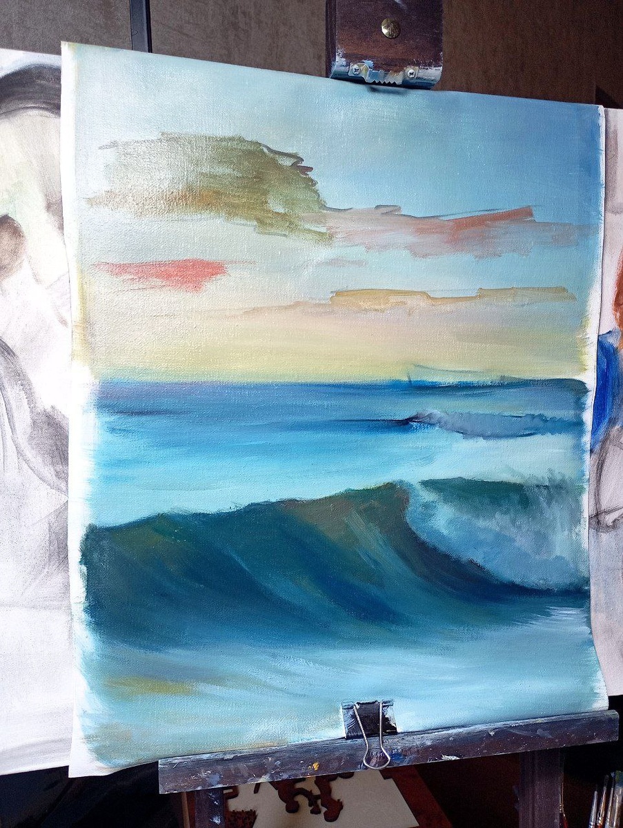 Начал новую картину. Да, волна и корабль, но волна немного другая, и корабль в другом месте. 🙃