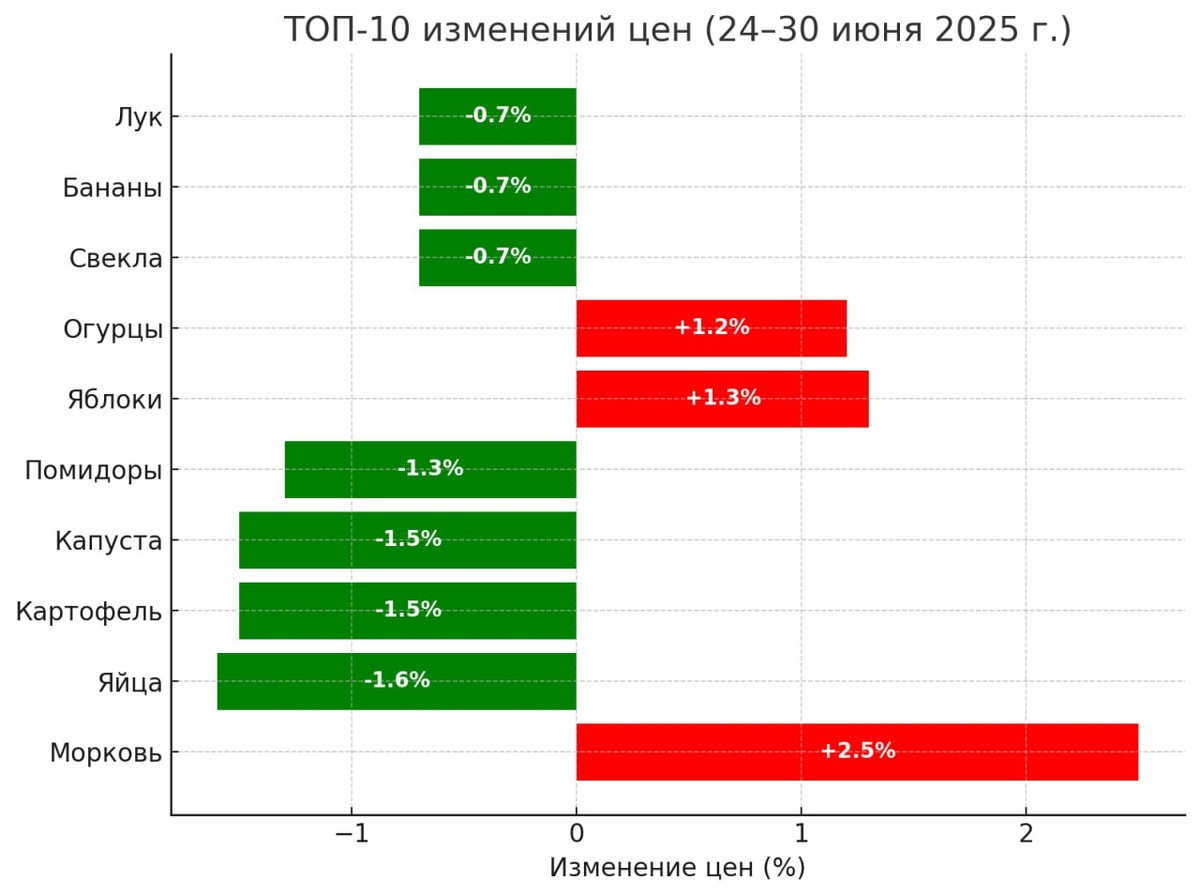 ⤴️По данным Росстата, индекс потребительских цен за неделю с 24 по 30 июня 2025 года составил 100,07%, а с начала месяца – 100,19