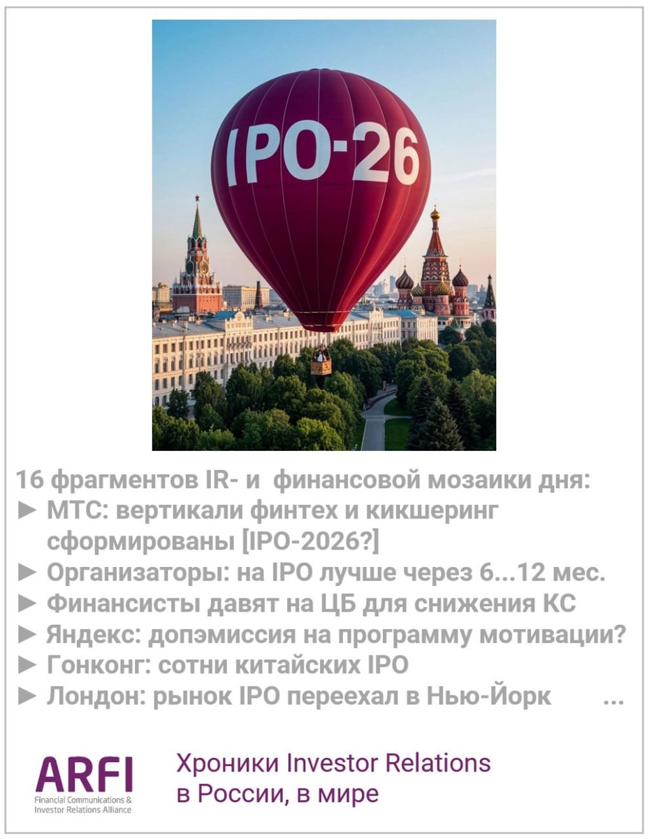 Утренний IR-дайджест 03.07.2025 ► МТС [MTSS] — внесли доли в кикшеринге и финтехе в юрлицо экосистемы [IPO-2026?] с оценкой в 130 млрд руб. в рамках начавшейся в декабре трансформации корп. управления группы (Компания) • завершили формирование вертикалей финтех и кикшеринг ► Банки, сопровождающие сделки IPO, настаивают на переносе потенциальных размещений либо на конец 2025 года, либо на 2026 год. Позиция банков о переносе IPO выглядит вполне обоснованной. И дело не только в качестве эмитентов. При текущей ключевой ставке (20%) институциональные и даже частные инвесторы действительно предпочитают менее рискованные инструменты. Зачем покупать акции неизвестной компании, когда можно получить гарантированную доходность по депозитам или облигациям? Рынок пока не может привлечь дополнительную ликвидность. «Хотя после летнего дивидендного сезона может появиться новая ликвидность и возможен рост индекса, в целом значительные средства остаются на вкладах. При текущих высоких ставках по вклад