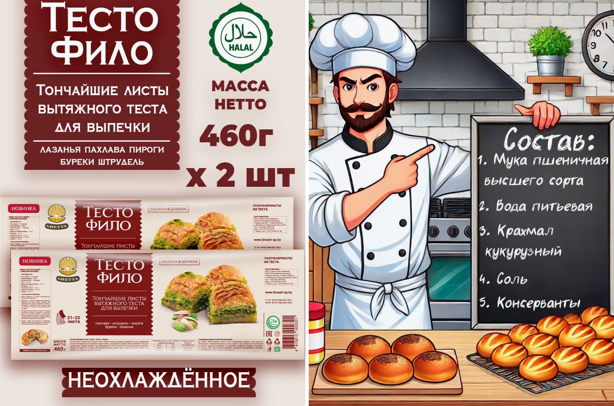 Как же хочется порадовать близких выпечкой или приготовить что-то душевное к чаю… но на практике часто не хватает ни времени, ни сил. Продуктов много, а вот найти по-настоящему удобные, чистые и понятные — уже задачка. В этой подборке собрала всё, что помогает готовить «по-домашнему», но без лишних хлопот. Без химии, сахара и странного послевкусия. Только простые и честные продукты — для уютных рецептов и спонтанных радостей. ⚠️ Важно: статья носит исключительно информационный и развлекательный характер. Я делюсь личными находками и впечатлениями, не настаивая на покупке. Все оценки субъективны. Хрустящее, тончайшее, постное — тесто фило помогает создавать кулинарные шедевры даже тем, кто не считает себя мастером выпечки. Не нужно месить, раскатывать, вымерять — просто достаёте из упаковки и заворачиваете начинку: сладкую, солёную, любую. Я сама только недавно взяла это тесто на пробу — честно скажу, пока не готовила. Очень жду, когда появится спокойный вечер, чтобы п