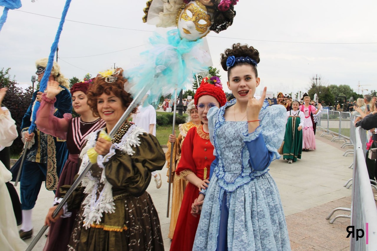 В воскресенье, непосредственно в день 275-летия Волковского театра, более 800 участников творческих коллективов со всей области прошли торжественным шествием по набережной от Речного вокзала до Стрелки и обратно. Колонну театралов возглавляли барабанщики из Рыбинского муниципального округа. Актёры были одеты в костюмы разных эпох. Многие изготовили одежду самостоятельно специально для шествия. Несколько фото с мероприятия! 😉