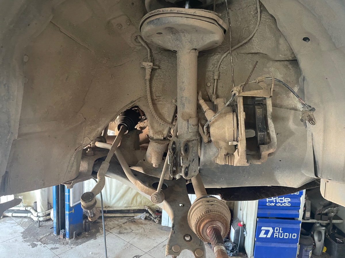 Сняли поворотный кулак Достали ступицу не без труда, на ступице осталась обойма подшипника, её аккуратно спилили не задевая ступицы Выпрессовываем подшипник Вычищаем всю грязь Прессуем новый подшипник И ступицу Собираем все на место
