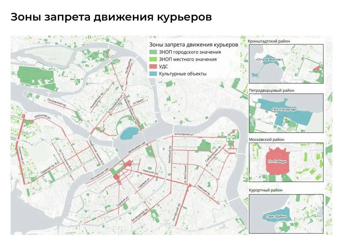 Вступило в силу постановление, согласно которому курьерам и самокатчикам нельзя ездить по основным улицам города. Штрафовать нарушителей должен Смольный — на сумму в 4 тысячи рублей для граждан и от 200 до 300 тысяч для компаний — но также к этому хотят привлечь полицию. Отдельно прописали зоны запрета движения на СИМ и для курьеров, и для обычных людей — например, Исаакиевская площадь, Невский, Летний сад, «Севкабель», Большая и Малая Морская улицы будут недоступны ни тем, ни другим. Нарушителей будут выявлять по камерам. "Фонтанка" 🌇 Жизнь в Кудрово Есть новости? Пишите сюда.