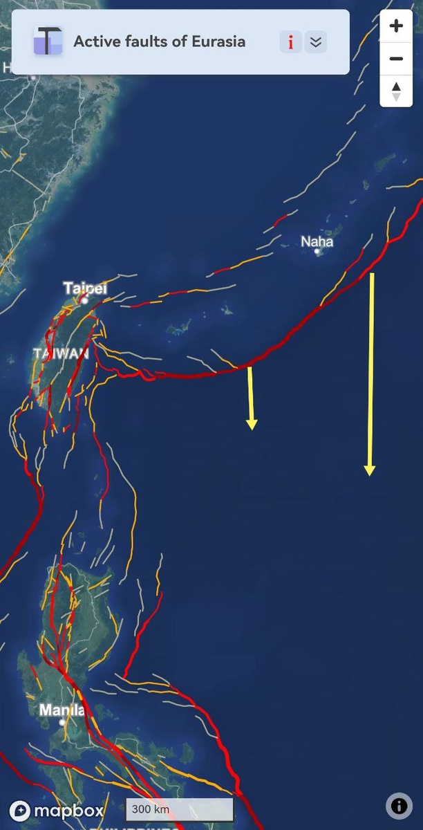 Усилиями закручивающегося циклона сформировался ОСТИ уровня М6 по границе Филиппинской плиты между Тайванем и Окинавой