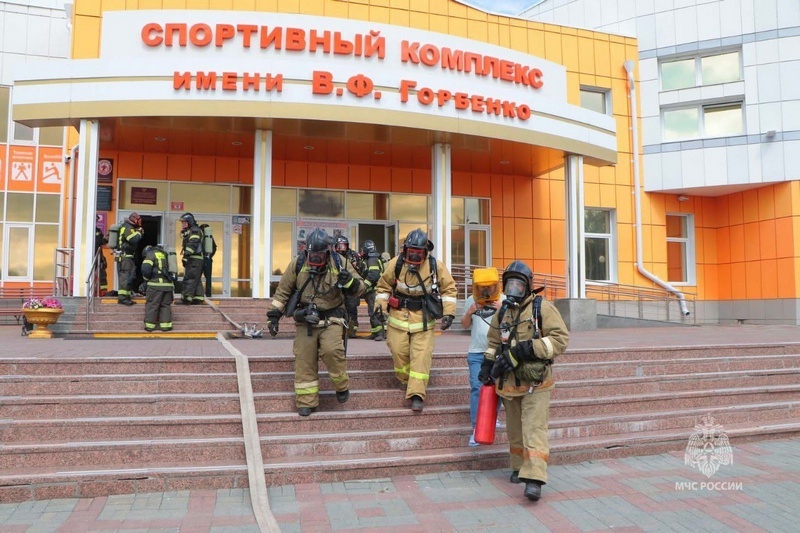В Кургане сотрудники МЧС отработали тушение пожара в спортивном комплексе