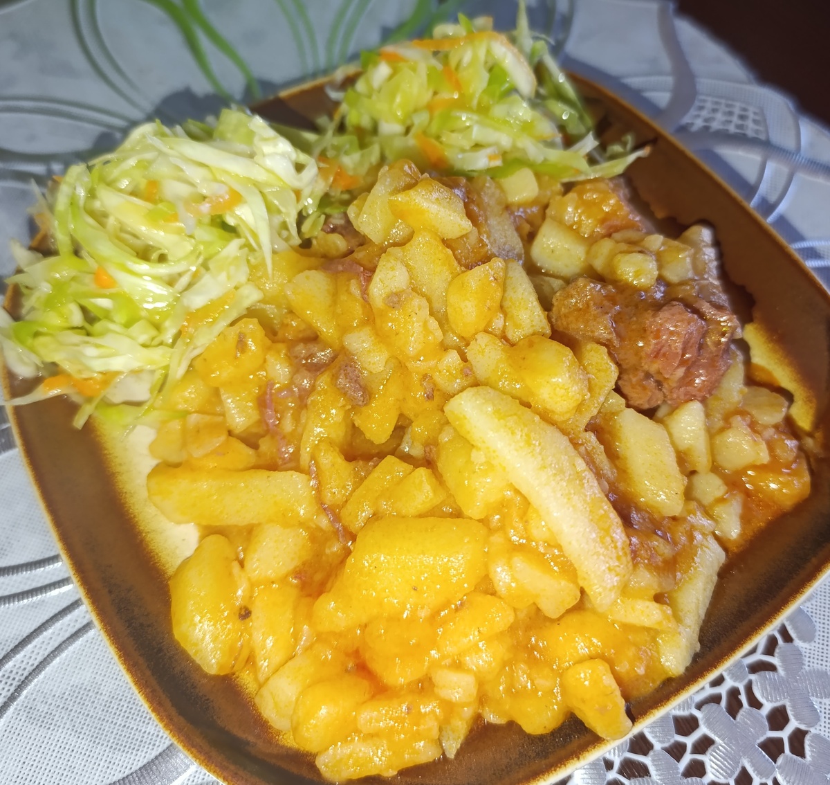 Даем закипеть и тушим до готовности. У меня ушло тоже около 15 минут. На этом этапе уже перемешиваем и вдыхаем ароматы😂. Картофель по-студенчески готов. С салатиком из капустки, морковки самое то!!!!!👍👍👍👍👍 Приятного аппетита!!!!