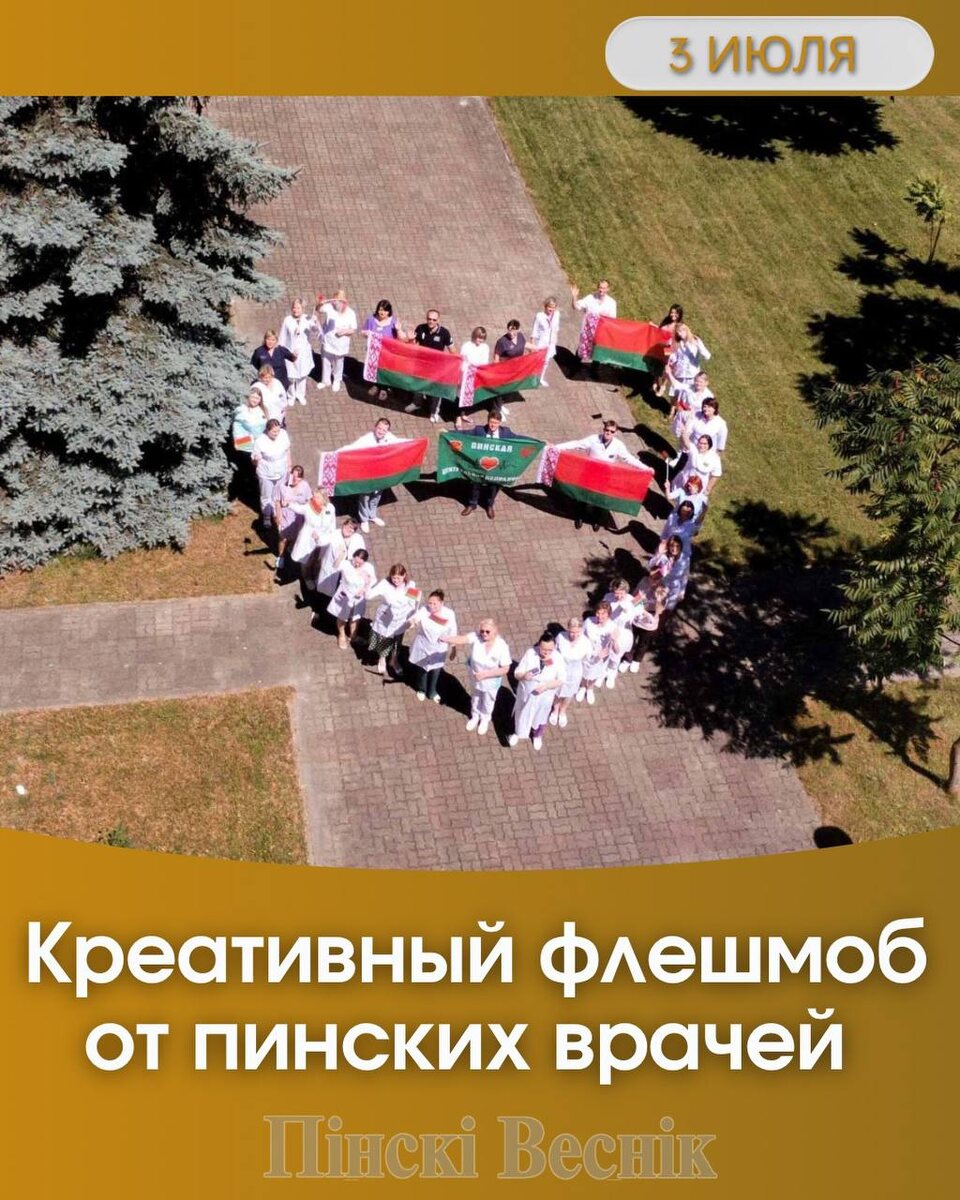 🟥🟥🟥🟩🟩 ✔️Креативный флешмоб от пинских врачей 📍Главный врач центральной поликлиники Игорь Киктенко и здравоохранение Пинского региона поздравляет всех с главным праздником страны - Днем Независимости Республики Беларусь. 🎉Медики Пинщины желают мира, добра и благополучия. 📍📍@Пинский Вестник ЮТУБ | САЙТ| ИНСТ | ВК | ОК | ФЕ | Прислать новость
