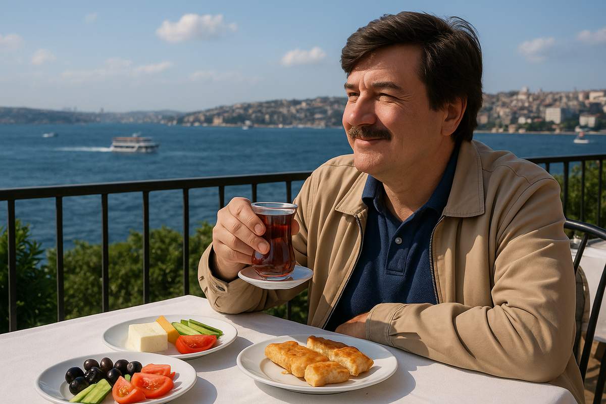 — Есть пара мест… Но обещай, что не станешь выкладывать это в Instagram. Balat был хорош… лет пять назад. Тогда он ещё не знал, что он Balat. А теперь там по утрам больше штативов, чем самоваров. Хочешь почувствовать настоящий завтрак по-стамбульски? Тебе не к граффити, а к чайнику. Вот куда ходят те, кто устал от “всего включено” даже в кафе. Когда хочется завтракать долго и чтобы кормили, пока сам не сдашься. Ты просто садишься — и через 5 минут перед тобой уже 15 тарелок. Хочешь больше? Спрашиваешь, и тебе приносят ещё. Здесь нельзя остаться голодным, это оскорбление традиции. Я был там однажды с другом из Измира. Он сказал: — У нас дома завтракают не меньше часа. Если быстрее — это перекус, а не жизнь. Что внутри: базлама, оливки, сыры, остренькие соусы, жареное тесто, мед, варенье, горячая лепёшка.