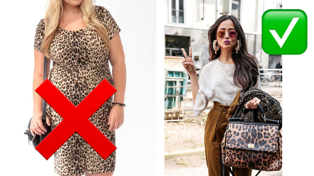 А в том, что наши женщины его носить не умеют! Сплошное "дорого-богато", смотреть противно. А ведь можно же и по-другому, сейчас покажем. Леопардовый принт — король анималистичных принтов. Он любой аутфит сделает заметным, добавит хищной перчинки. Но есть один нюанс: леопардовый принт может испортить весь образ, сделав его вульгарным. Как делать не надо, расскажем уже сейчас! Леопардовый — это яркий, заметный принт. Чтобы не переборщить с ним, нужно выбирать немного винтажный вариант, слегка блеклый. Это первый секрет, а второй — в комбинации с белым или бежевым цветом. Дрессировщики ведь не сразу засовывают голову в пасть хищнику! Перед этим идут годы дрессировки. Поэтому и мы будем вводить в образ леопардовый принт осторожно. Например, добавим пару деталей в виде сумки или шарфа. Сделать его фоном для однотонного костюмного или трикотажного комплекта — да, вот так просто, но эффективно. В таком варианте леопард не станет привлекать внимание, но станет отличной изюминкой, которая вн
