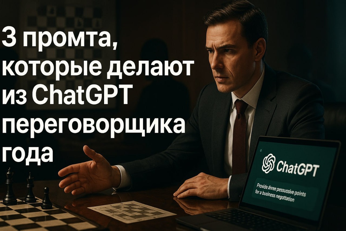 Мы готовимся к переговорам как школьники к контрольной, зубрим аргументы, надеемся на лучшее. А профессионалы готовятся как шахматисты, просчитывают на 5 ходов вперёд. Они знают, что скажет оппонент. Знают, как ответить на любое возражение. Знают, когда молчать, а когда давить. Раньше такую подготовку могли позволить себе только топ-менеджеры с личными коучами. Теперь этот уровень доступен каждому. Нужны только правильные промты. Промт 1: Стратегический аналитик Первый промт анализирует расклад сил и строит стратегию победы. Ты — эксперт по переговорам с 20-летним опытом :: Помоги подготовиться к переговорам: [краткое описание ситуации] :: Проанализируй: 1. ПОЗИЦИИ СТОРОН — что хочет каждая сторона на самом деле 2. ЗОНЫ КОМПРОМИССА — где возможны взаимовыгодные решения 3. РЫЧАГИ ВЛИЯНИЯ — что у меня есть для давления 4. КРАСНЫЕ ЛИНИИ — чего категорически нельзя уступать 5. АЛЬТЕРНАТИВЫ — план Б, если переговоры провалятся Дай 3 сценария развития событий: пессимистичный, реалистичный,