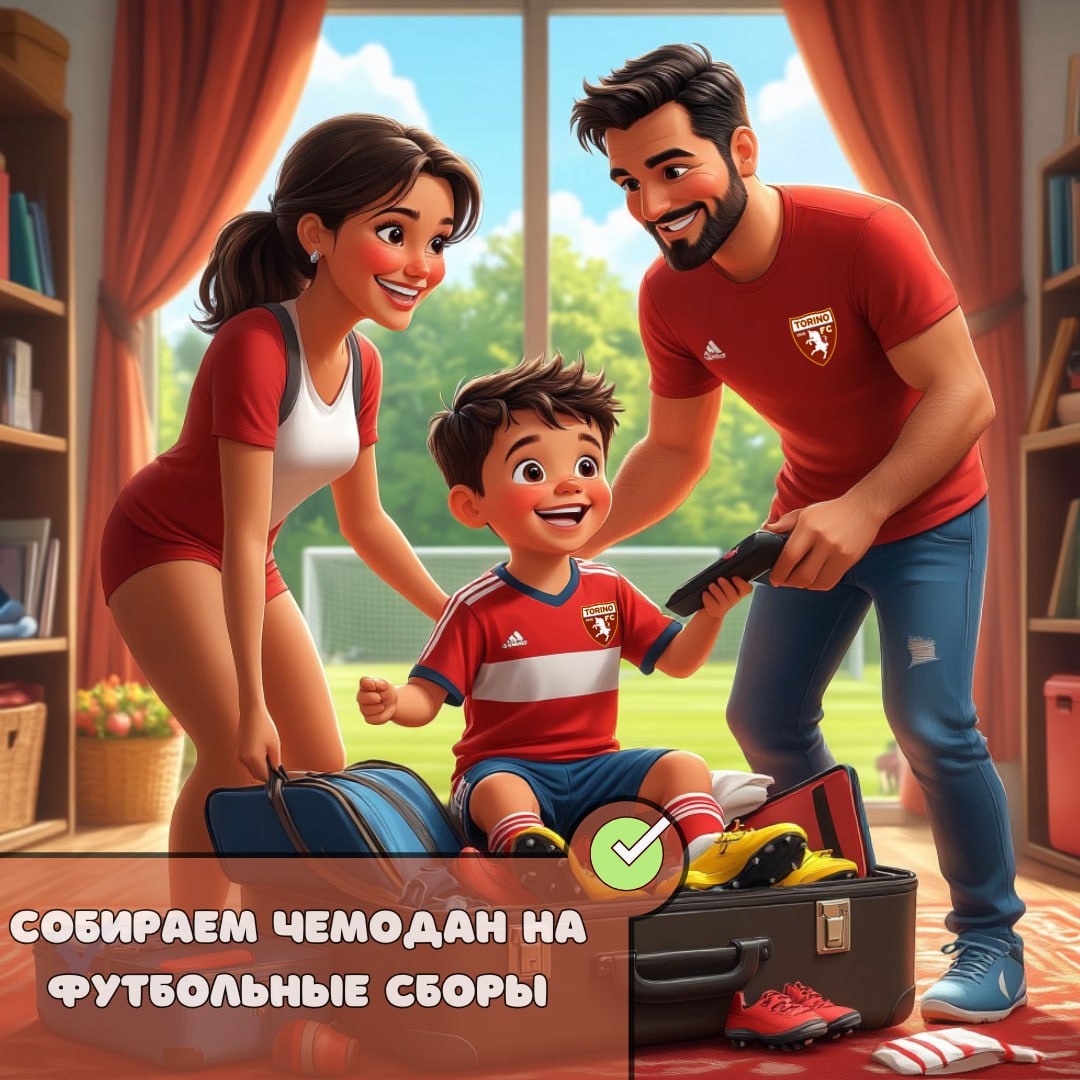 🧳 Собираем чемодан на футбольные сборы с Академией Торино: чек-лист для родителей! ✅ Привет, футбольные мамы и папы! 🚀 Ваш ребенок скоро отправится на наши сборы, а значит, пора проверить, всё ли готово. Чтобы ничего не забыть и не переживать (мы знаем, как это важно!), держите понятный гайд по сбору чемодана. 📃 Документы – без них никуда! На регистрации обязательно нужны: ✔️ Медсправка от педиатра, что футбол – можно! (ребенок не имеет противопоказаний для занятий футболом) ✔️ Справка по форме № 079/У (как для лагеря). Просим заранее проверить сроки действия справок – чтобы не было неожиданностей на заезде! 🧳 Что кладем в чемодан? ➕ Обувь: 🟪 До 8-10 лет – сороконожки (малышам так комфортнее!). 🟪 Старше – шиповки (лучше 11+ шипов для уверенного сцепления). ➕ Одежда/гигиена: 🟪 Промаркируйте по желанию (особенно для малышей – так вещи точно не потеряются). 🟪 Зубная паста, щетка, мочалка – без этого никак! 🟪 Полотенца – не требуются (их достаточно в отеле) 🟪 Мешки для ст
