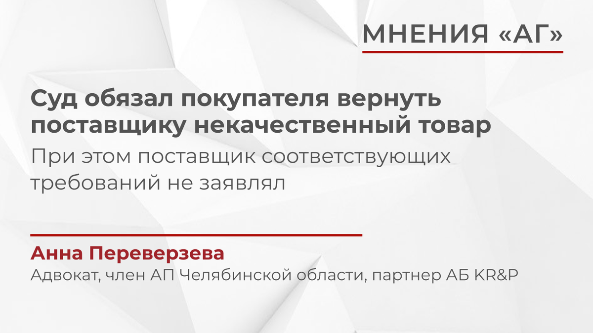 Мнения «АГ» // Суд обязал покупателя вернуть поставщику некачественный товар