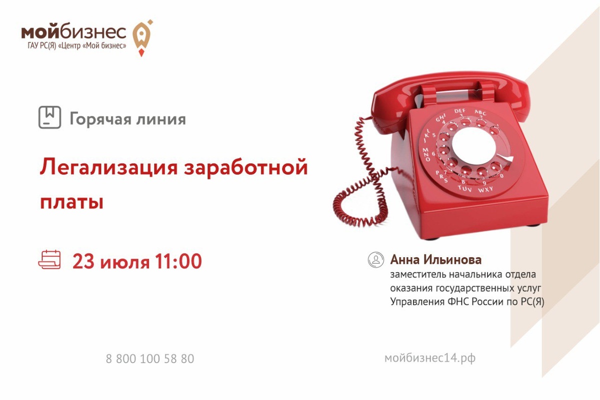 Центр «Мой бизнес» приглашает принять участие в Горячей линии «Легализация заработной платы» На горячей линии участники смогут задать вопросы касательно процесса приведения всех расчетов с персоналом в полностью прозрачную среду, какие могут быть негативные последствия выплаты «серой» зарплаты. Дата: 23 июля. Время: 11:00. На вопросы ответит Анна Ильинова, заместитель начальника отдела оказания государственных услуг Управления ФНС России по РС(Я). ️Телефон для консультаций: 31-93-62 доб.1445 На все возникающие вопросы по ведению бизнеса и мерам поддержки вам ответят: по номеру бесплатной горячей линии 8-800-100-58-80; через сервис «Линия прямых обращений» на Портале малого и среднего предпринимательства РС (Я) Мойбизнес14.рф. Развивайте бизнес с нами! @moibizsakha