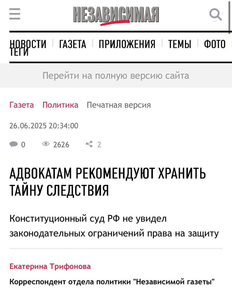 В статье Независимой газеты вышел комментарий Управляющего партнера нашего бюро - Немова Александра, по вопросу который разбирал Конституционный суд : «Ограничивает ли тайна следствия право на защиту?» Спойлер: «КС считает, что нет, коллеги - адвокаты с этим не согласны» К слову сказать, у адвокатов итак не много способов добывать информацию и собирать доказательства, так чтобы они еще и были приняты судом, в отличии от наших процессуальных оппонентов …