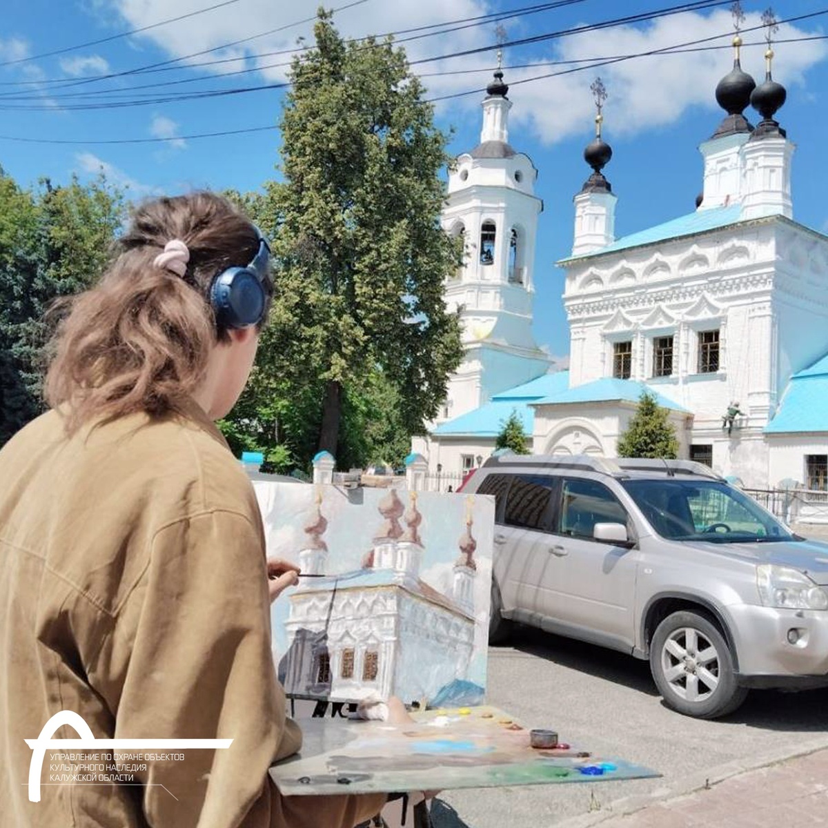 Рисование объектов культурного наследия не только творческий процесс, но и способ увековечить память о великих памятниках архитектуры и истории. На фотографии студент 2 курса Калужского колледжа культуры и искусств Михаил, который решил сохранить на бумаге образ объекта культурного наследия федерального значения «Церковь Покрова на рву». Построена данная церковь была в 1687 году на краю Березуйского оврага и рва, окружавшего стены деревянного кремля с северо-востока. Здание входит в архитектурный ансамбль древней центральной части города и отличается от всех Калужских памятников архитектуры богатством декоративного убранства.