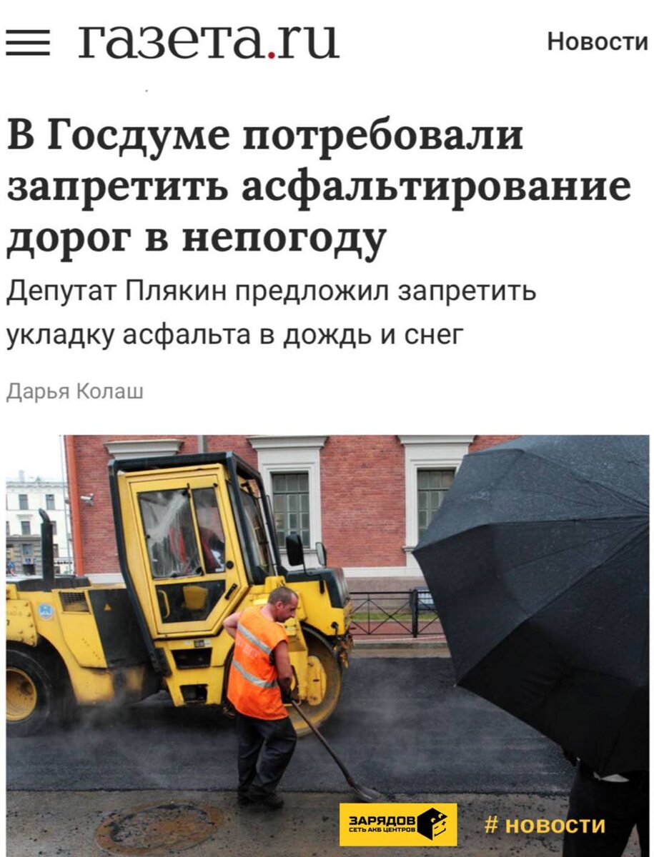 В России хотят запретить укладывать асфальт в снег и дождь — обращение из Госдумы уже направили в Минстрой.