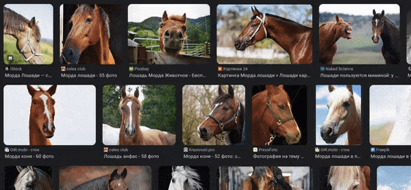 На начальном этапе мы использовали все доступные инструменты: парсеры, готовые датасеты, а также ручной поиск. Однако реальность оказалась сложнее, чем наш первоначальный оптимизм. Мы столкнулись с тем, что на большинстве ресурсов использовался один и тот же материал или одни и те же лошади, что критически замедляло сбор уникальных данных. Наши автоматизированные инструменты часто собирали дубликаты, ошибочно идентифицируя их как разных животных из-за примененных фильтров. Кроме того, огромное количество изображений не подходило по качеству или ракурсу.