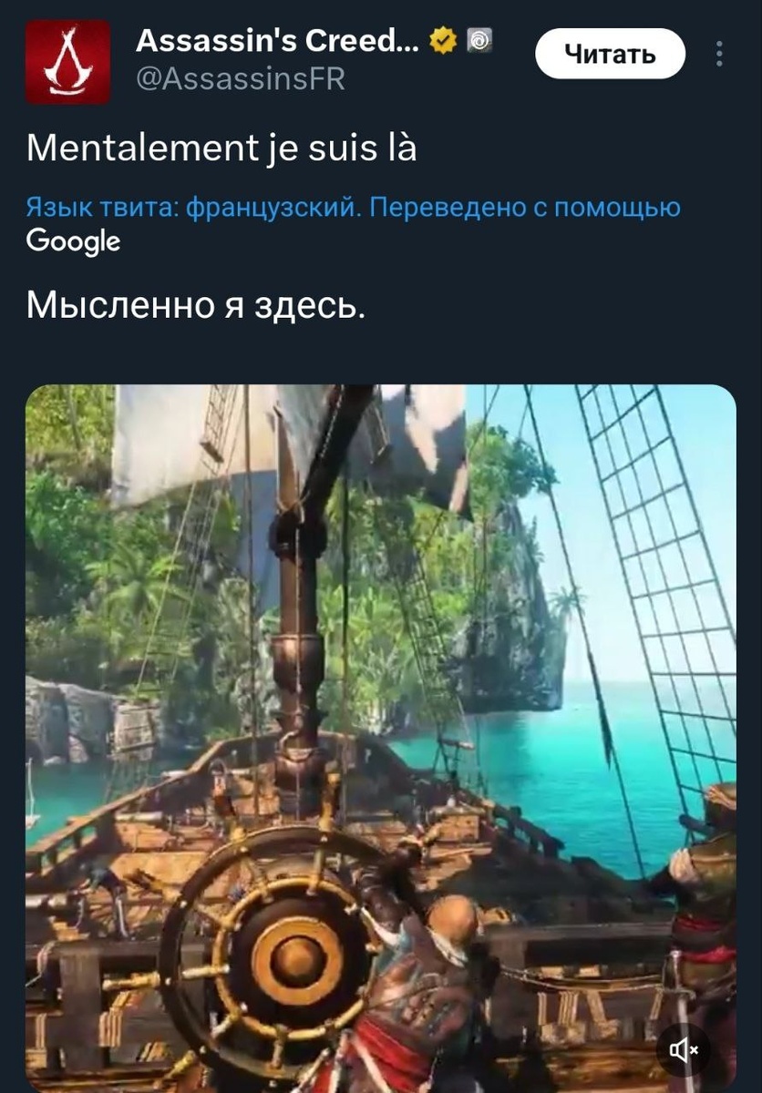 🐯 Пиратская часть франшизы Assassin's Creed может вернуться О ремейке Assassin's Creed IV: Black Flag прямо намекнули главная звезда части Мэтт Райан и разработчики франшизы Ubisoft. Так, на недавней автограф-сессии британский актёр Мэтт Райан, исполнивший в игре роль пирата и ассасина Эдварда Кенуэя, обмолвился поклоннику Assassin’s Creed IV: Black Flag, что ему придётся пройти игру ещё раз. На вопрос фаната неужели речь идёт о ремейке, актёр лишь ехидно улыбнулся и отметил, что больше он сейчас не может рассказать. Эстафету распространившихся после этого слухов тут же подхватили Ubisoft. На своём официальном канале они написали «Мысленно я здесь» и прикрепили к посту видео с прохождением легендарной части. Игры ли это на поприще массмедиа или разогрев фанбазы перед главной новостью — пока остаётся неизвестным. Официально на данный момент ремейк пиратского экшена ещё не был анонсирован, но поклонники довольствуются малым и продолжают надеяться на релиз. ⚡️Подпишись на «Медиа-Х В