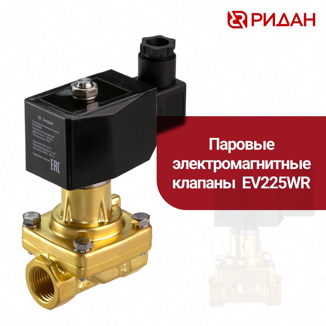 Обновление линейки паровых электромагнитных клапанов EV225WR Компания «Ридан» представляет модернизированную версию паровых клапанов. В новой линейке EV225WR с тефлоновым уплотнением реализованы существенные технические улучшения по сравнению с предыдущей моделью EV225R. Ключевые преимущества обновленной серии: ▪️расширенный температурный диапазон работы: от 0 до 180°C ▪️больший допустимый перепад давления ▪️не требуют наличия минимального перепада давления для срабатывания ▪️улучшенные значения пропускной способности ▪️расширенная линейка размеров: от G ¼ до G 2 ⏩ Перейти в каталог #продукция_Ридан