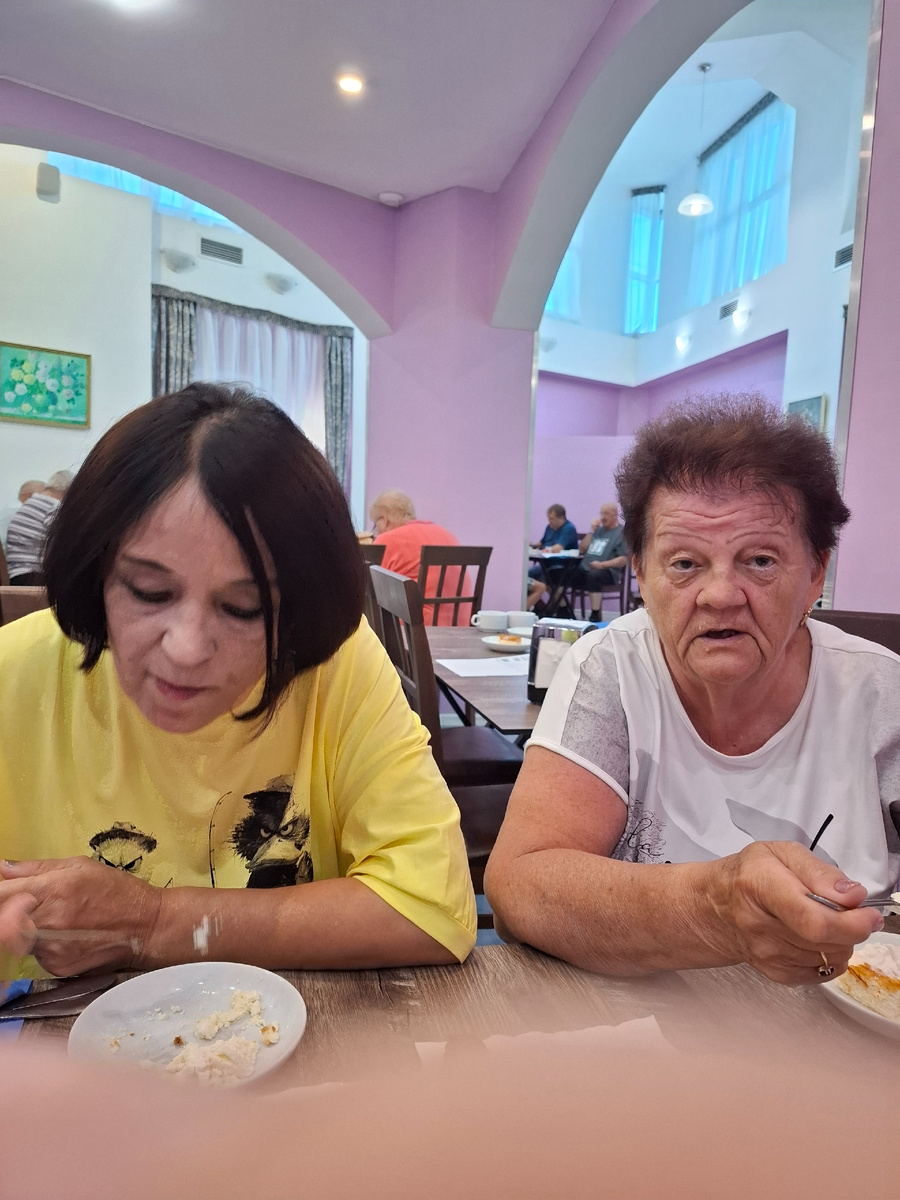А за столом со мной сидят женщины из Белгородской области. Я не знаю с кем я ближе, с соседями по столу или с соседями по номеру. Но за столом у нас очень весело, потому что одной из нас хронически не хватает внимания. И получается так, что раньше или позже, один раз в день или три, наш стол является инициатором скандала, который тормозит общественную жизнь и приём пищи, причём у всех. Один мужчина вчера так возмутился остановкой процесса, что сказал официанту:" Да пора кормить этот пятнадцатый стол после всех, вечно скандал устроят, и официанта заставят бегать туда сюда. А в это время все остальные ждут." А автор всех шоу пятнадцатого стола, это Надежда. Лет ей много, жизненный опыт огромный. К тому же с ее слов мы знаем, что она работала завпроизводством в столовой. Поэтому каждый приём пищи у нас начинается с призыва:" А что у нас на первое? Овощной суп? Где овощной? Что у нас тут плавает? Картошка, капуста, морковка , помидоры. А где зелёный горошек и зелень? Люся! ( это она офици