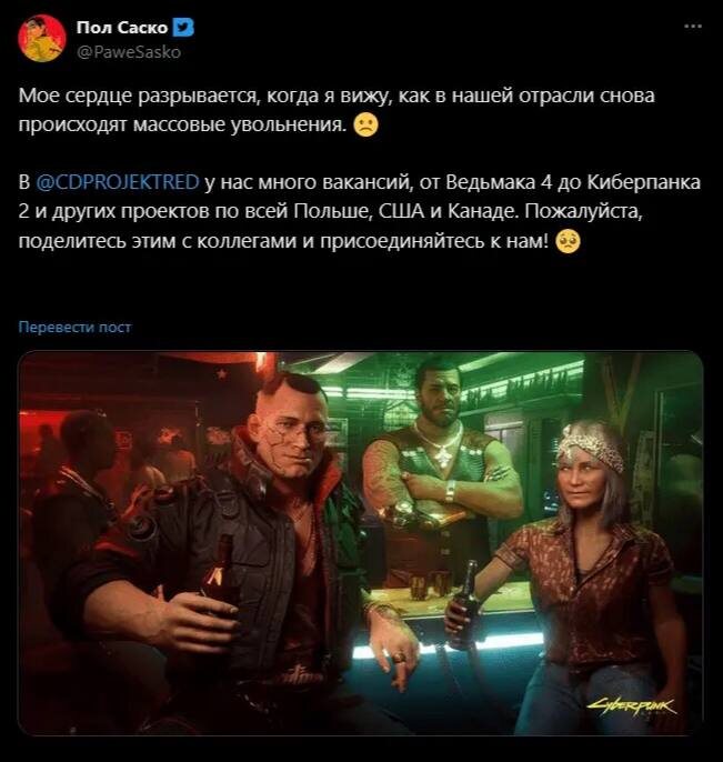 Один из ведущих сотрудников CDPR Павел Саско пригласил уволенных из Microsoft и Xbox специалистов в свою команду. PlayStation Новости 🔥 Актуальные скидки | смотреть