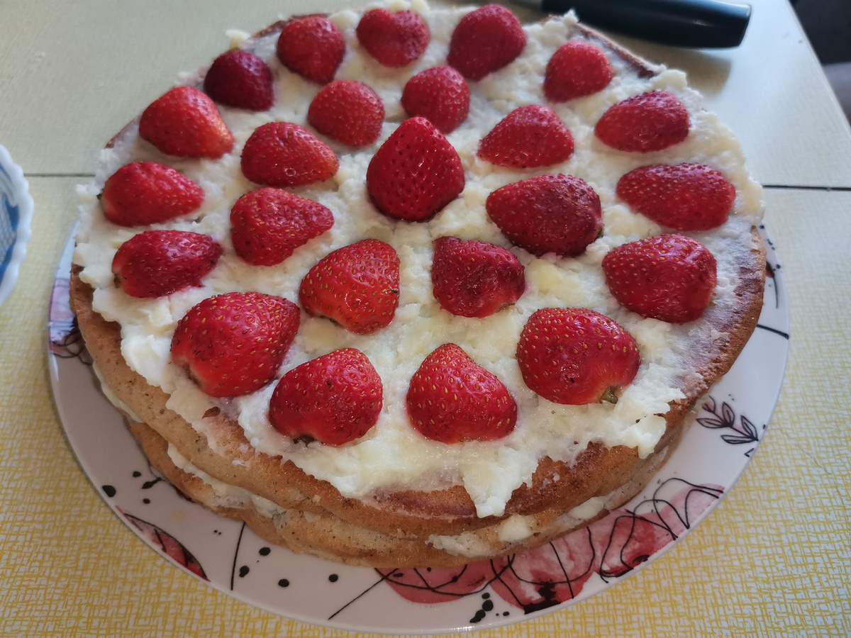 Торт с орехами, клубникой и заварным кремом, просто тает во рту!!!