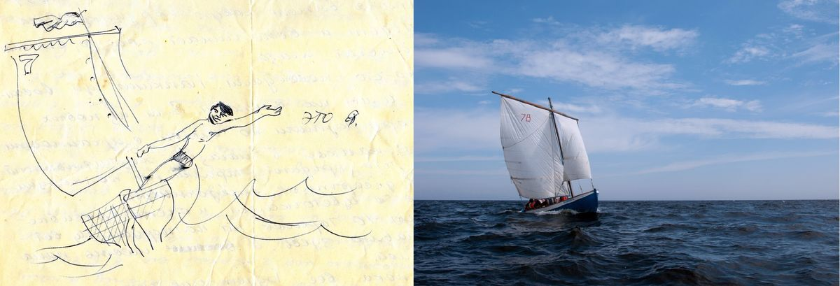 Я тоже решил порадовать папу настоящим морским приключением и договорился с нашим преподавателем, "Морским волчарой", которого все называли "Боцман из Аполлоновки", что он возьмёт меня и папу на борт шлюпки, в которой очередные курсанты Севастопольской Морской школы ДОСААФ проходили обучение, как мы два месяца назад. Юра был на службе, а места в шлюпке было мало. Папа, как все, сидел между банками, прислонившись спиной к изгибу борта шлюпки, а я помогал "Боцману" управлять шлюпкой на свежем ветре, бесстрашно выставившись всем телом в качестве противовеса.