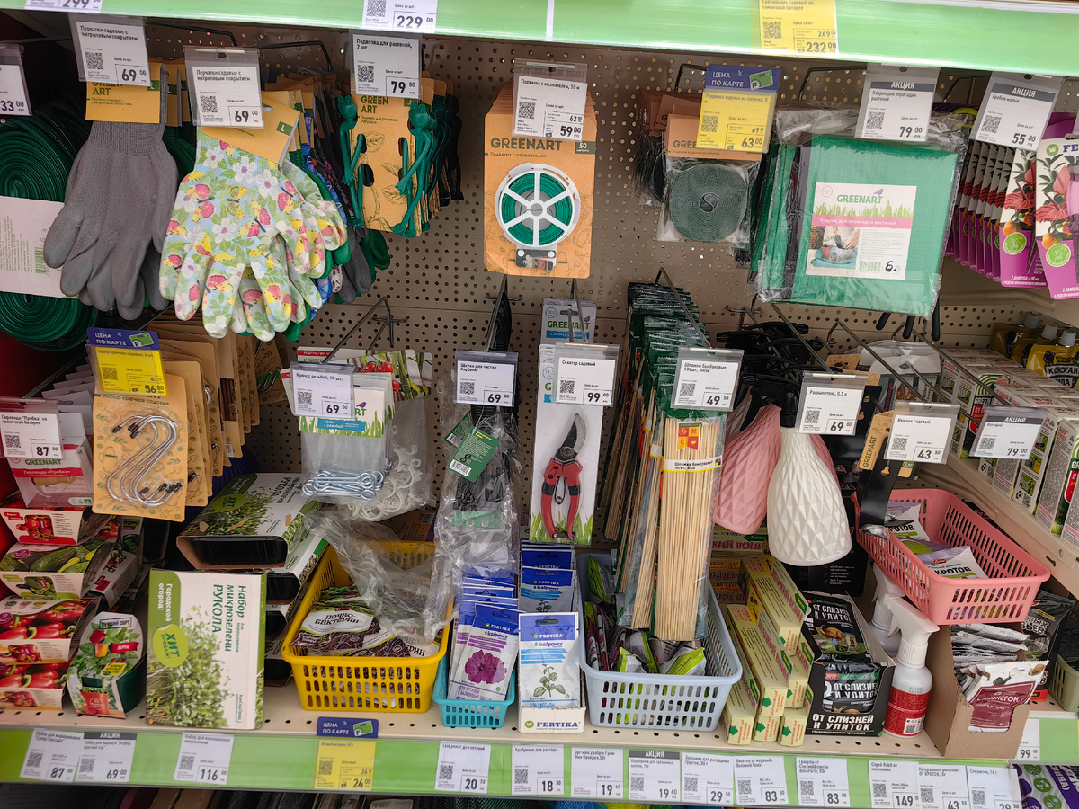 Садовый отдел, как обычно, один из самых привлекательных в наших краях)) Тут всегда есть люди и есть чем поживиться)) Правда в последний мой заход в наш Фикс-прайс было ощущение, что они ждут завоз. И тем не менее, ассортимент кое-какой был, я себе тоже прикупила нужносей. Взяла себе вот такую ленту для подвязки на пробу, но это, скорее, для комнатных растений и горшечного садика. В моих масштабах таких рулончиков надо очень много))) Да и проще накручивать стебли на веревки подвязки. С колышками я выращиваю только в горшках растения в этом году. Обнаружила, что в Фиксе можно поживиться большими упаковками удобрений. Вот тут был Карбомид, Двойной Суперфосфат (я прикупила пару пачек) и Эко Калий от Фертики. Из не удобрений обнаружила еще смесь сидератов в большом пакете за 99р Удобрения в Фиксе я беру в основном для комнатных, так как пакетики маленькие, но и тут нашла любопытное. Нашла жидкий Фитоспорин от ОЖЗ Кузнецова для опрыскивания по листу. Взяла на пробу один флакончик. Так=то я
