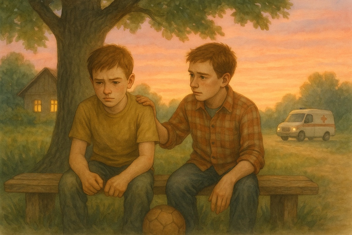 8 Так пролетело лето, осталась последняя неделя моих каникул. Бабушка начала понемногу собираться, складывая вещи, которые больше не понадобятся. В воздухе уже чувствовалась лёгкая прохлада, предвестник осени, и листья на деревьях начали желтеть по краям, словно природа готовилась к новому сезону. В выходные должны были приехать родители с грузовиком. Мы всё погрузим и уедем, а вернёмся ли снова, не знаю. Мне бы очень хотелось, чтобы родители на следующий год сняли эту дачу, ведь здесь оставался мой друг — Юрка. Мысль о том, что я могу больше никогда не увидеть его, сжимала мне горло. С этими немного грустными мыслями я решил сбегать к Юрке. Подбежав к их дому, я увидел скорую помощь, припаркованную у ворот. Белая машина с красным крестом выглядела чужеродно на фоне деревенского пейзажа. Из дома вышел врач в сопровождении соседки, их лица были серьёзными, почти каменными. Я вбежал в дом, чувствуя, как сердце начинает биться чаще, а в груди поселился холодный комок страха. На кровати ле
