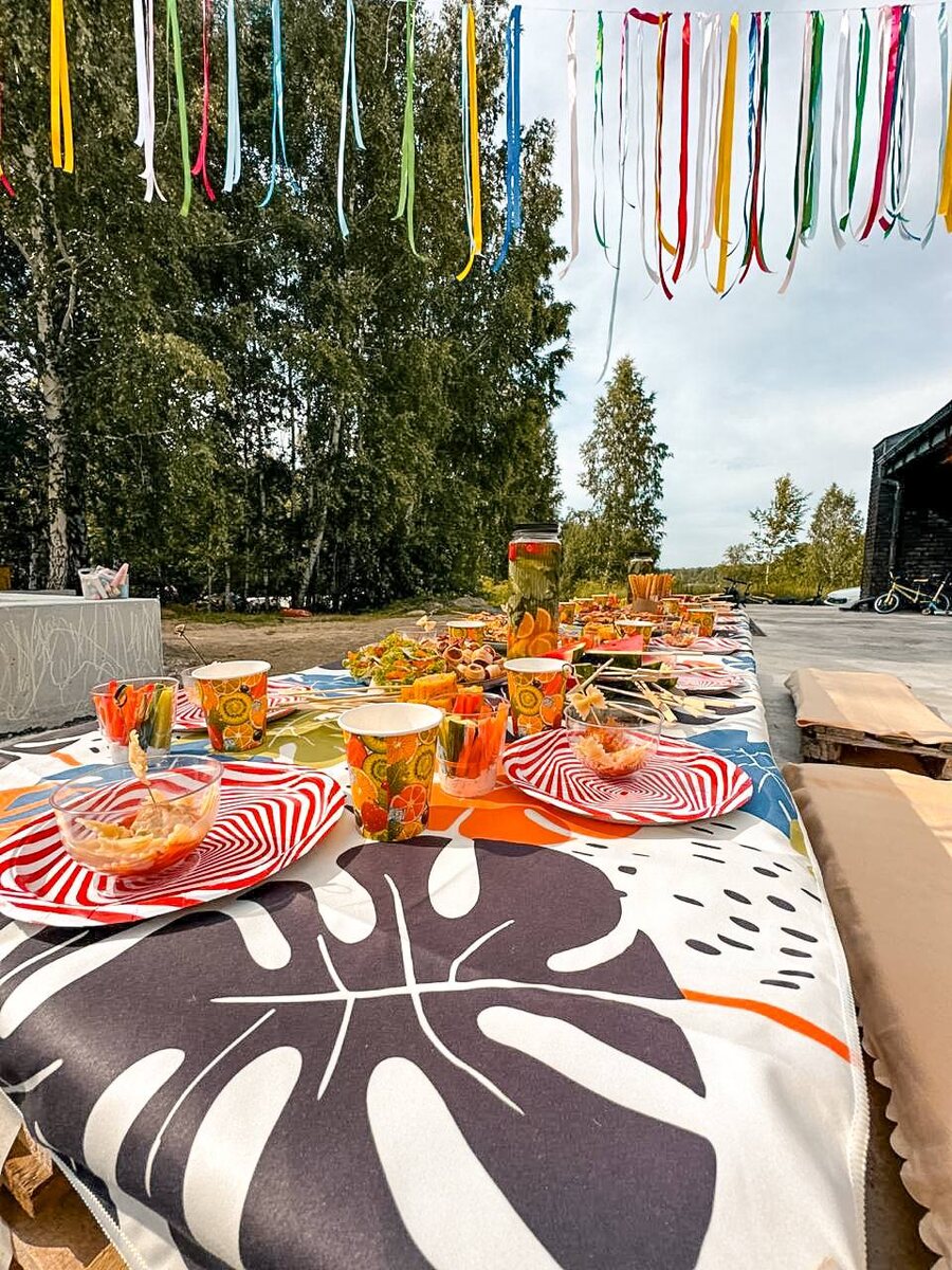 Праздновали дома, на участке. Вся программа, весь движ — прямо во дворе. Даже несмотря на то, что вокруг дома ещё идёт стройка.