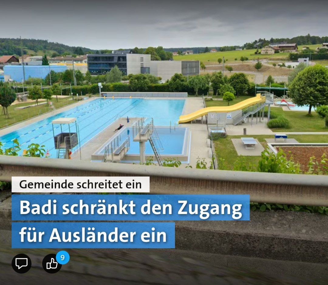 📌 " С 4 июля по 31 августа муниципалитет Поррентрюи ограничивает доступ иностранцев в плавательный бассейн. По словам представителей муниципалитета, причиной этого является плохое поведение молодежи и нехватка места. Исключение сделано для приграничных туристов. Французские трансграничные туристы, имеющие действующее разрешение на работу в Швейцарии, могут продолжать посещать бассейн вместе со своими семьями. Это решение призвано предотвратить штрафные санкции в отношении лиц, работающих за границей. " 💬 Таки да ! Это случилось ! Штраф за посещение блядь бассейна Скоро вход пойдет штангенциркуль! Для молодежи , кто не в курсе шо это такое и как им мерили черепа в сове время - Гугл или ИИ в помощь . Но мы ( Швейцария ) первые - кто не пускает в бассейн ИНОСТРАЦЕВ . Просто из за цвета кожи , разреза глаз или тупо гребанного аусвайса. Поздравляю! Мы этого заслужили 🙄 И да - все , поголовно все иностранцы плохо ведут себя в бассейнах. Только для местных ерлаубт, они по умолчанию к