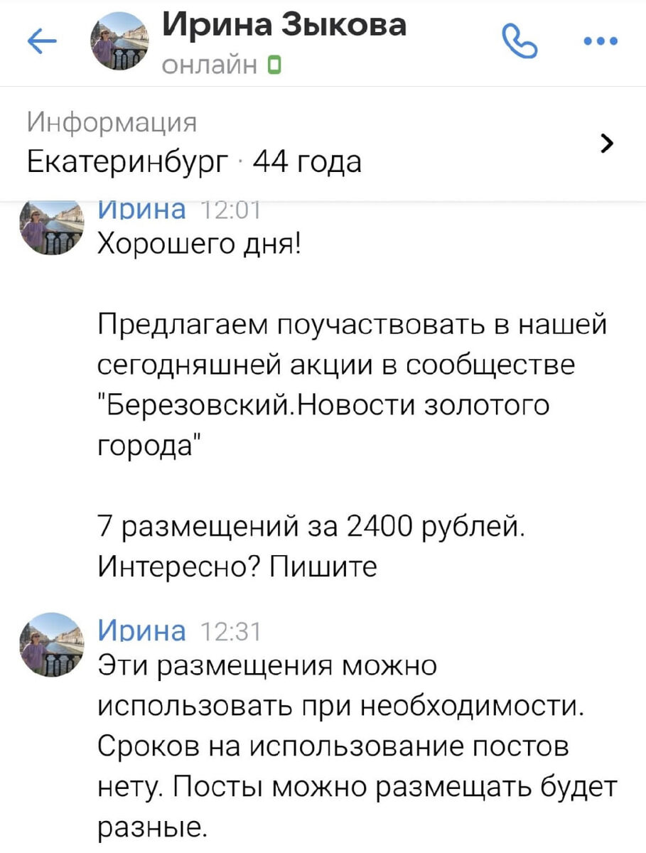 Дорогие друзья, срочное обращение! Сегодня какое-то неопознанное вещество создало клон страницы нашего руководителя и активно рассылает рекламные предложения. Пожалуйста, будьте бдительны. Все наши постоянные рекламодатели хорошо знакомы с Ириной Зыковой и сразу заподозрили, что это не она. Жалобы в службы поддержки уже направлены. ВКонтакте удивительный тормоз в этом плане, но мы верим, что скоро страницу заблокируют. @zg66