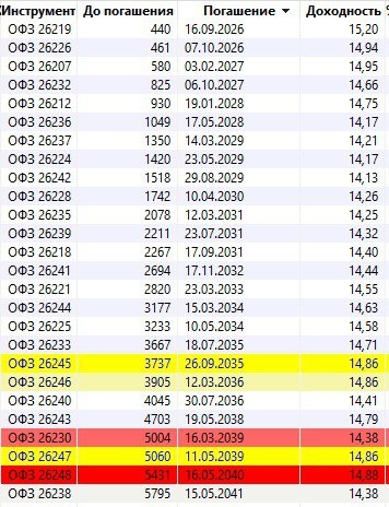 Почему инфляция не будет низкой Заседание ЦБ: рост на ожиданиях, падение по факту Длинные ОФЗ Недостаток квалифицированных кадров. Растут цены на услуги Отсортировал ОФЗ, входящие в индекс RGBI, по датам погашения Рост зарплат бюджетников. По словам Силуанова, индексация зарплат бюджетников в 2025г составит 16,2% Рост тарифов ЖКХ с 1 июля от 11,9% (реально, около 20%, т.к. местные аппетиты тоже высокие). Соответствующий рост тарифов монополий. Доходность ОФЗ уже ниже 15% (т.е. заложено снижение ставки 25 июля около 2%). Ежегодно, осенью растут цены на овощи и фрукты. Учитывая сказанное, откуда инфляция 4% ? Думаю, июньская инфляция 0,19% — это минимум на ближайшие месяцы. Важно не само событие, а лучше или хуже ожиданий. Т.е. при понижении ставки на заседании ЦБ РФ 25 июля на 1-2%, может быть коррекция. Думаю, покупка длинных ОФЗ принесёт доходность в лучшем случае, около 30% И риск форс мажора (роста инфляции к 2024г во 2 пол. 2025г.)