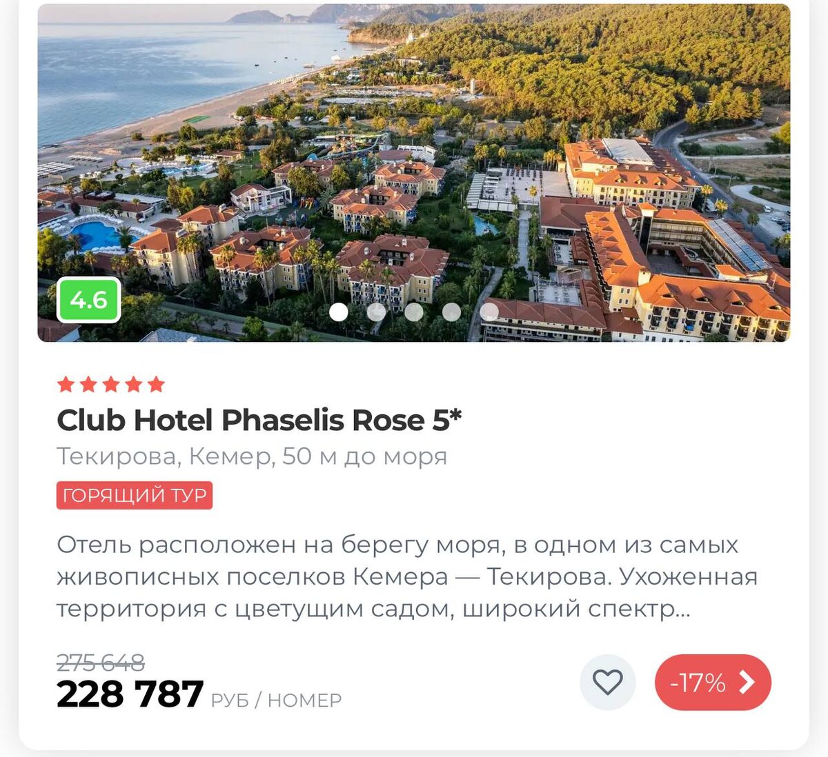 🔥 ГОРЯЩИЙ ТУР В ТУРЦИЮ ИЗ ПИТЕРА! 🔥 Привет, друзья! ✨ Редкий оффер на шикарный отдых в Турции — кому-то сегодня благоволят звёзды! 🌟 В высокий сезон, да в замечательный отель, горящий тур — это ли не чудо?! Брать и немедля! 🏨 Club Hotel Phaselis Rose 5* Сервис, питание, персонал — всё превосходно! А вода в поселке Текирова — это отдельный восторг. 💦 ✈️ Из Петербурга на двоих взрослых 📅 7 июля | 8 ночей 💰 Всего за 228 787₽ (Ультра все включено!) Успей забронировать, пока есть места! 🚀 #Турция #ГорящийТур #ОтдыхВТурции #PhaselisRose #Текирова #ВсеВключено #Петербург #Лето2025 #Путешествия #Акции #Выгодно