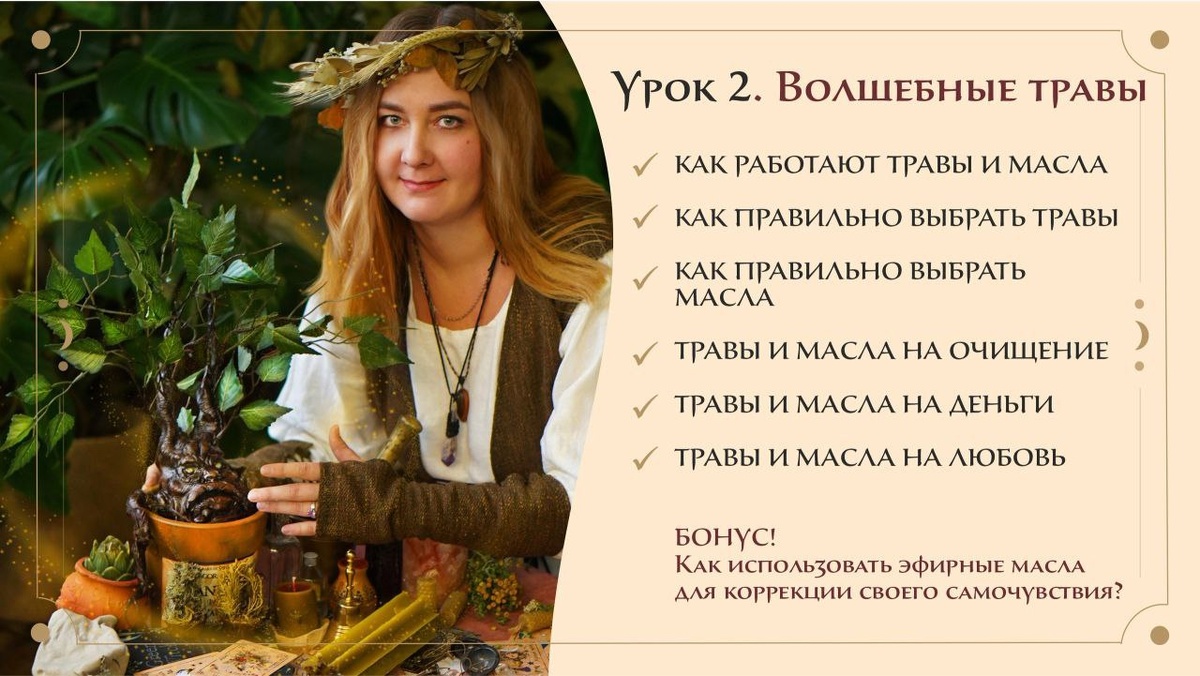 Если вы хотите восстановить эту связь💛, приходите на второй день практикума, где я расскажу о "Волшебных травах и маслах". Вы узнаете: